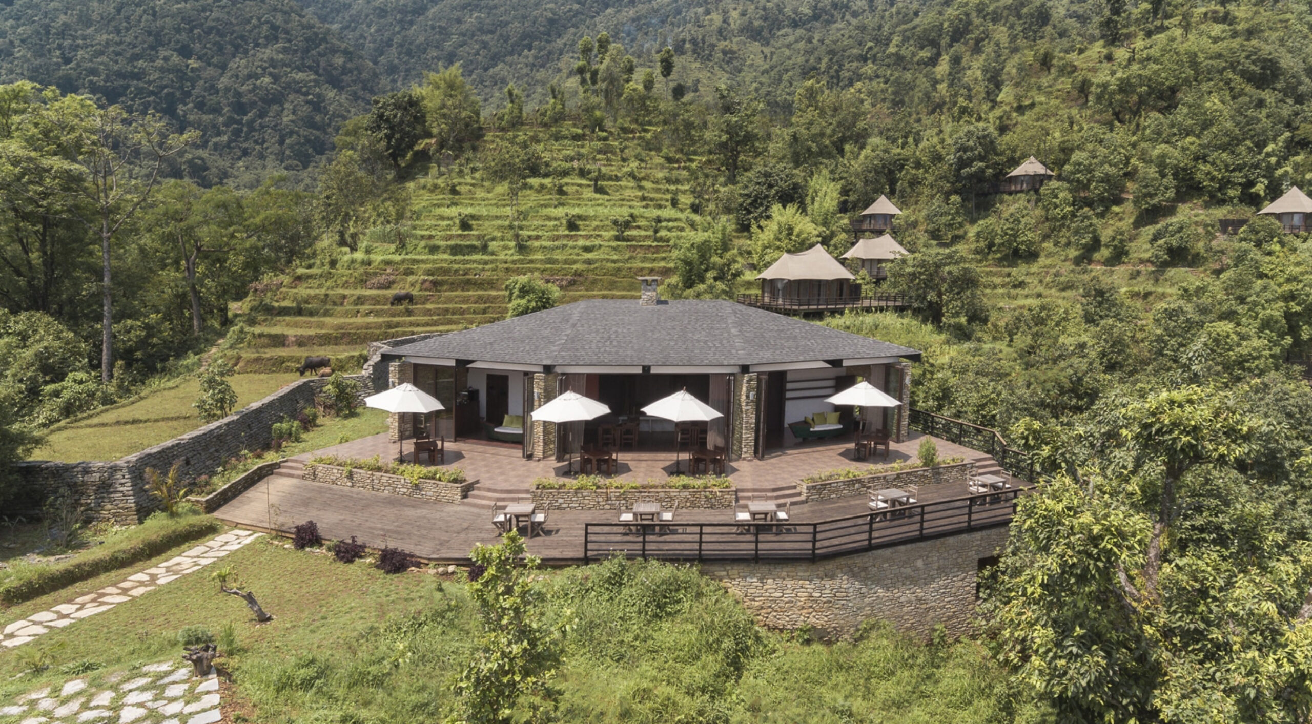 Designed by the prestigious English architect Edward Gilbert, its architecture is inspired by Tuscan palaces.