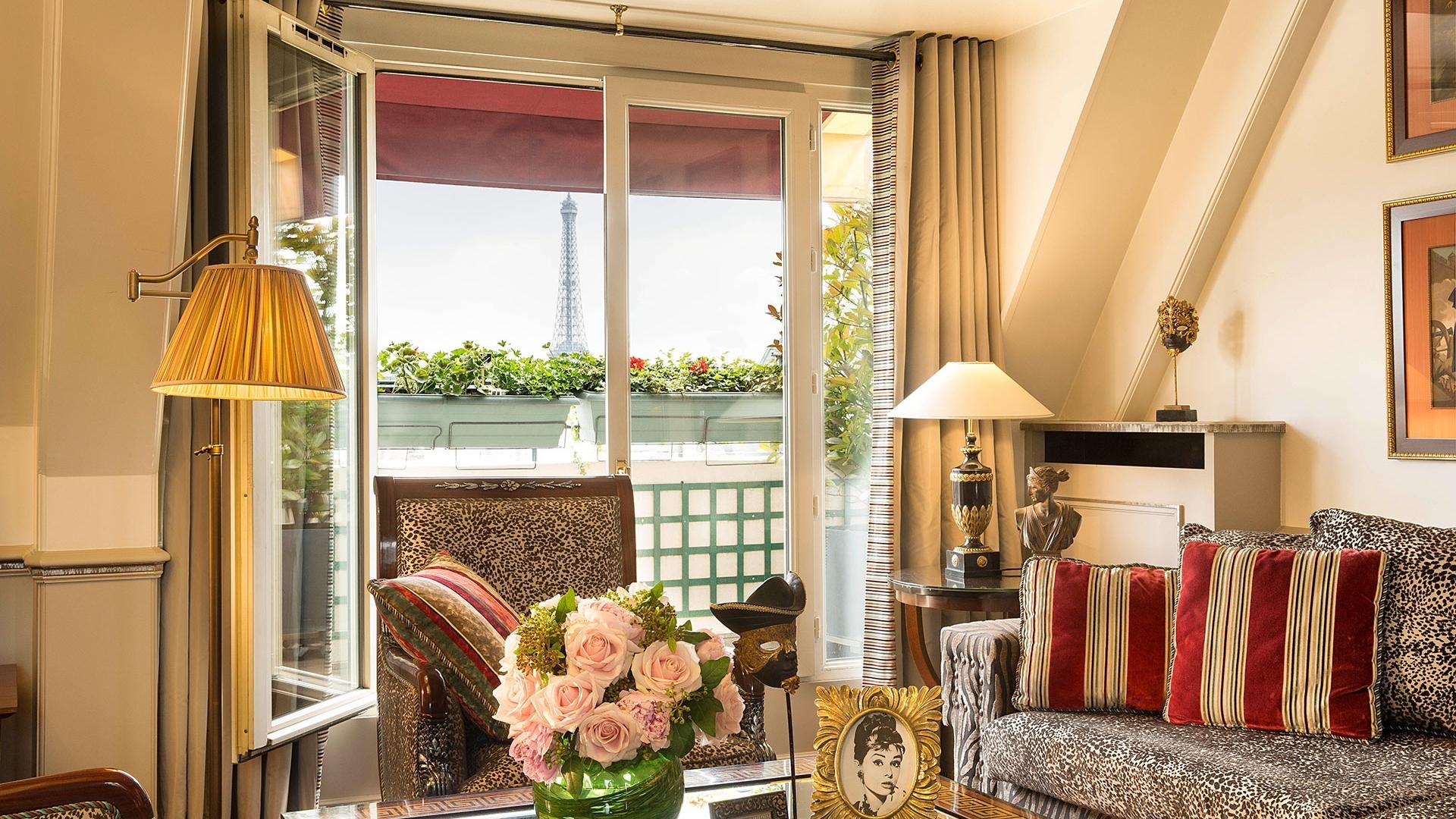 Its 39 rooms and 57 suites offer panoramic views on the Arc de Triomphe, the Eiffel Tower, the Avenue de Friedland or the flowered interior courtyard.